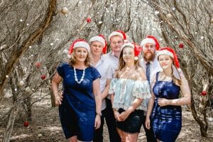 Big family and dog having there Christmas photos taken at Catherine Hill Bay location