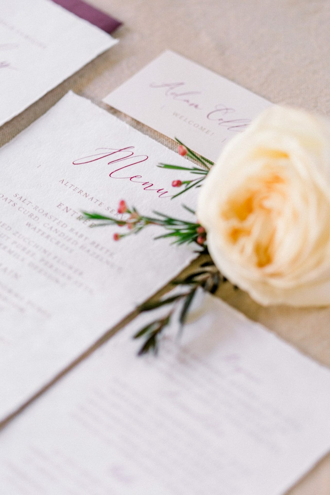Choosing the right invitations and stationery for your wedding can at first be a little daunting. One quick look on Pinterest and you are flooded with all these options and some couples have no idea where to begin! Working with a stationer – aka a graphic designer is a great way to start to help you work out your style and narrow down the options that suit you best. Designers like myself, live and breathe creativity, fonts, colors and even card stocks. We get excited when we can immerse ourselves in a new brief – which is capturing you and your partner’s style. Your invitations and later, stationery and signage are the first glimpse your guests have of your wedding, it ties together your personality and styling of your ceremony reception so it is important to make a statement about your style and what fun is about to unfold on your big day.